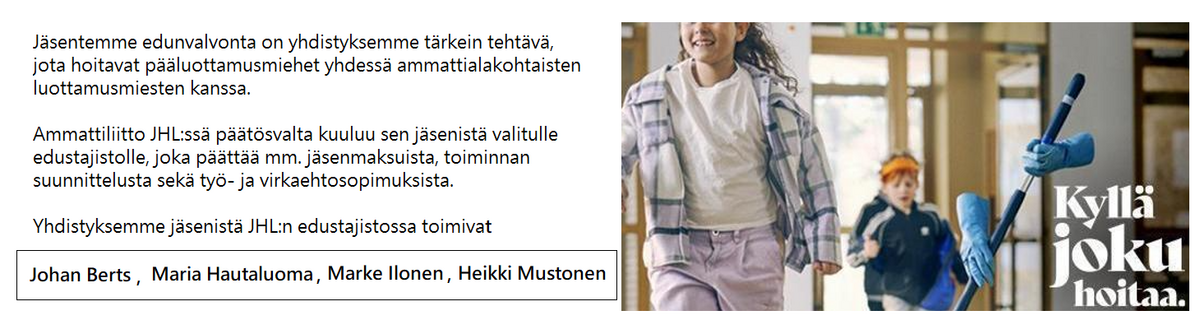Liittyessäsi JHL:n jäseneksi, liityt myös Julkisten ja hyvinvointialojen työttömyyskassan jäseneksi.